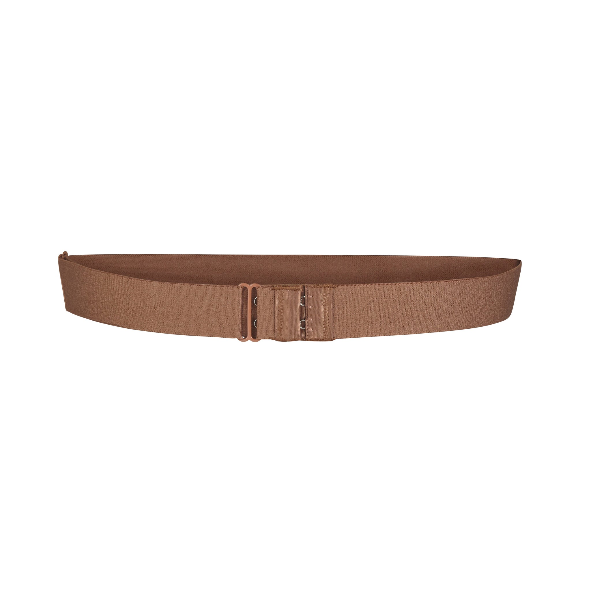 - Wrap strap around to front of body and fasten other end of extender to hook and eye. Straps will be crisscrossed in the back