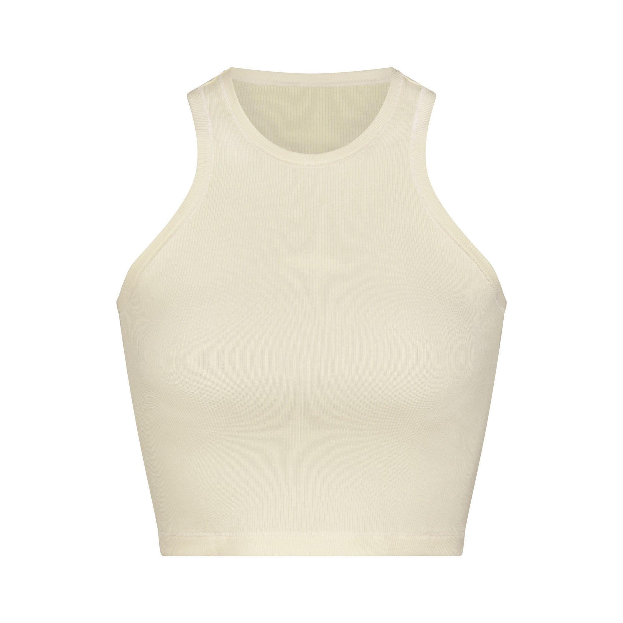 A ribbed tank with flattering high neck and cropped fit, the Soft Lounge Racer Tank is made for everyday wear and all day comfort. Perfect to wear with a ribbed legging or ribbed boxer for the ultimate loungewear set.