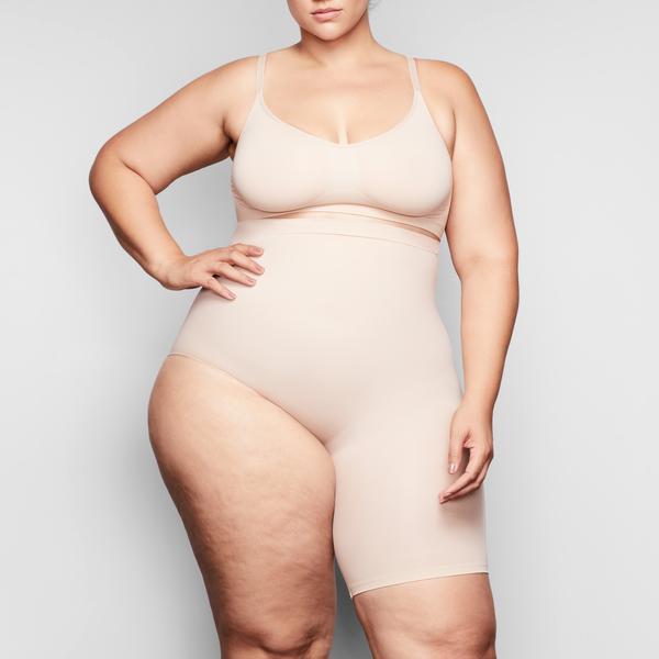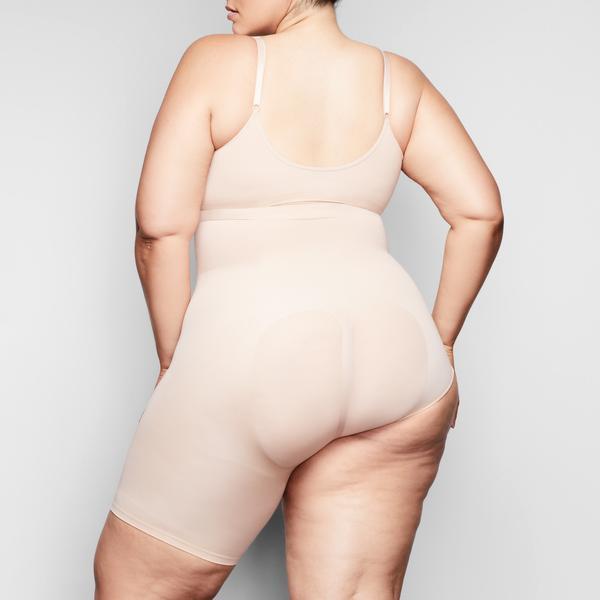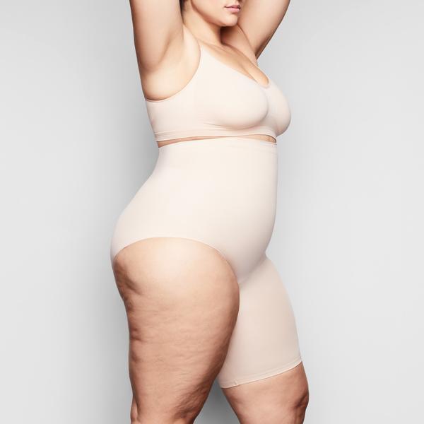 Kim’s sculpting solution to high-slit skirts. This soft and seamless micro short holds in your core, smooths your thigh, and lifts and shapes your butt.